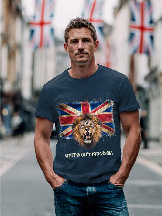 Men's Union Jack Lion Print Casual Tee
