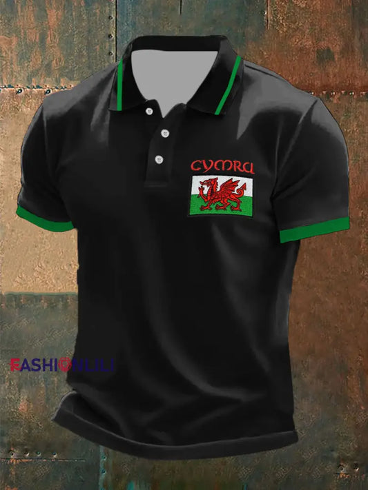 Men's Welsh Flag Casual Button T-Shirt