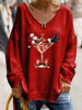 Retro Christmas Santa Claus Cocktail Print Comfortable Long Sleeve T-Shirt