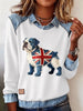 Women's British Style Bulldog Labrador Print Casual Top