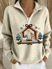 Women's Nativity Print Casual Zip-Up Top