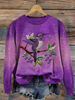 Women's Purple Gradient Hummingbird Floral Print Regular Sweatshirt
