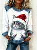Women's Vintage Christmas Cat Denim Patchwork Sweatshirt