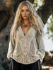 Women's Vintage Tribal Celtic Knot Lace Patchwork V Neck Linen Shirt